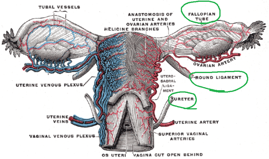 역할 : 자궁의 탈출을 방지하고 견인(traction)시켜 제 위치에 놓이도록 한다.