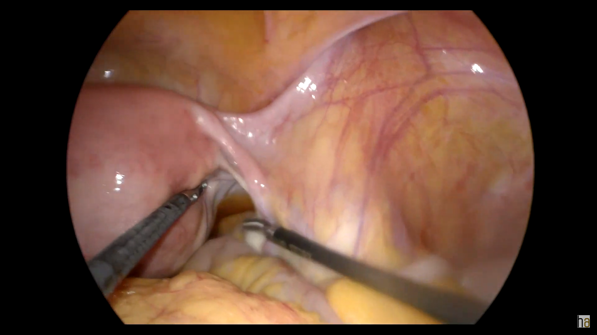 전경 전굴되어있어서 복강경으로는 윗쪽 부분인 fallopian 이랑 round만 보이는 것이었다.