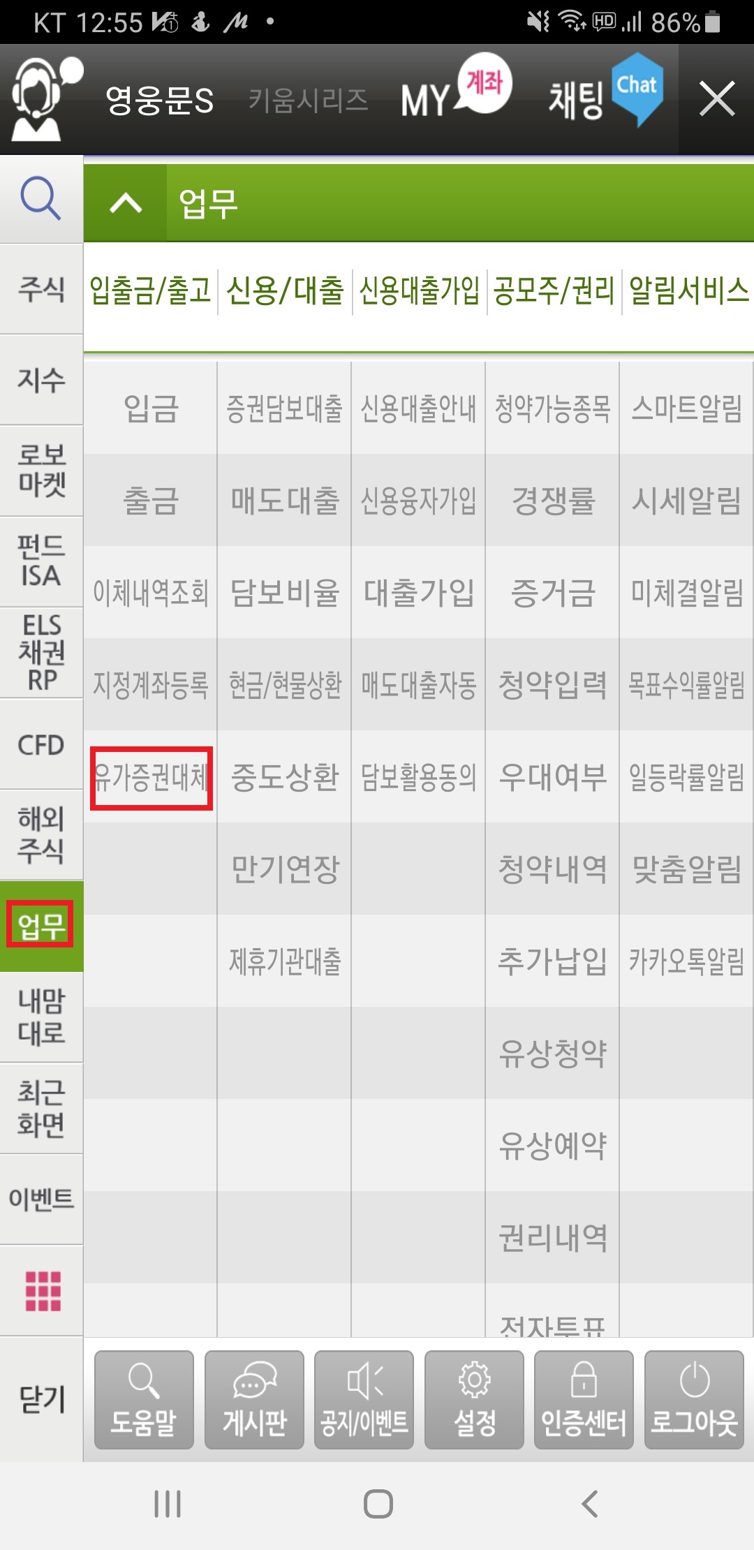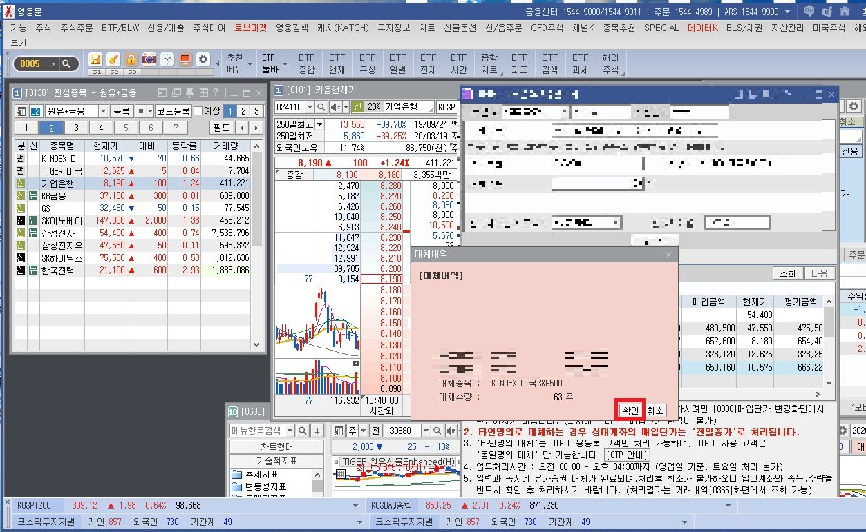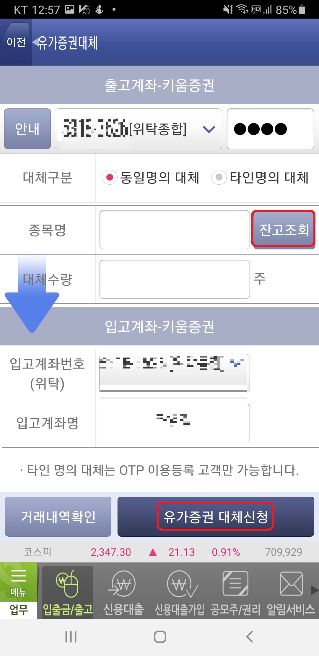 그러면 유가증권 대체가 나오는데 그때 조회 후 원하시는 종목을 선택하고 신청을 누르시면 됩니다.