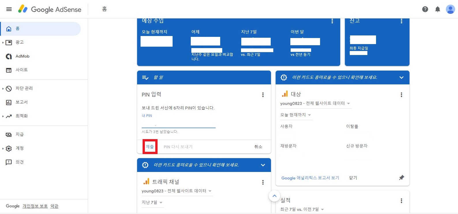 시키는대로 1 ~ 4단계 해서 들어가려는데 애드센스가 바뀌었는지 입력이 안됬어요..