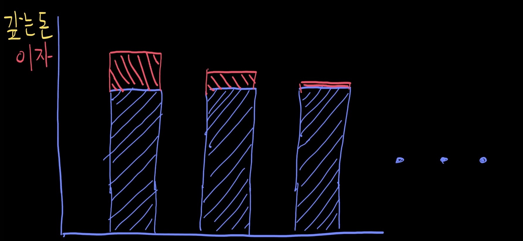 원금이 줄기 때문에 이자는 가면 갈수록 줄어듭니다.
