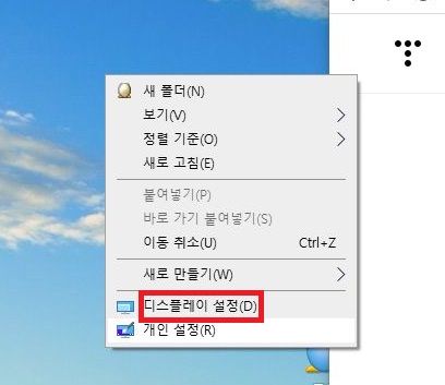 아 그리고 오른쪽 마우스를 클릭하여 디스플레이 설정에 들어갑니다.