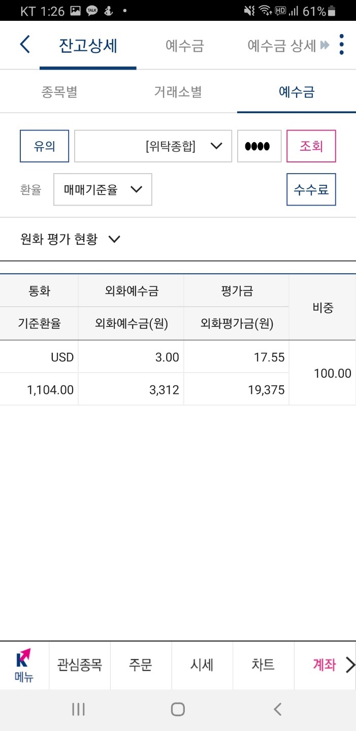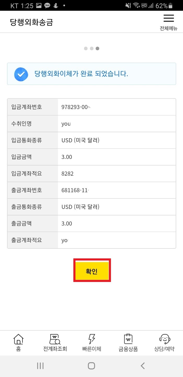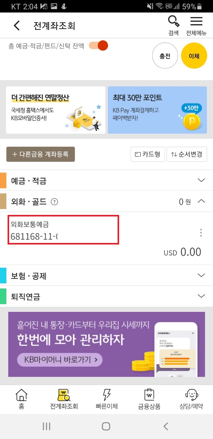 이제 전체 계좌조회에서 외화/골드에서 계좌를 확인할 수 있습니다.(전 3달러를 송금해서 0원으로 보이네요)
