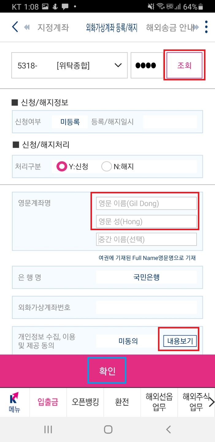 이제 가상계좌를 만들었으니 국민은행 외화계좌를 만들어야 됩니다.