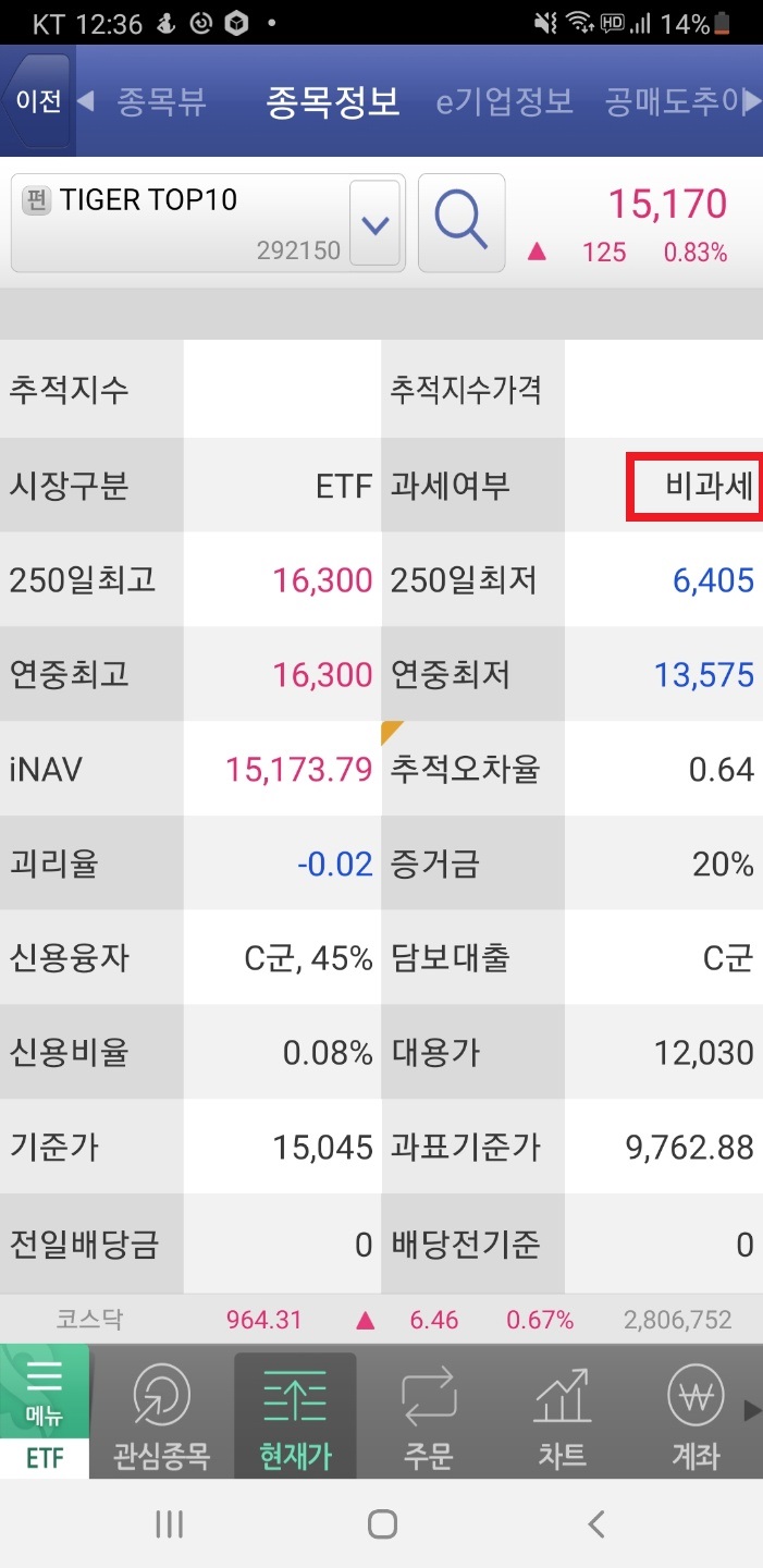 TIGER TOP10, KODEX 은행과 같은 경우 제가 아는 대로 역시 비과세 상품에 해당했습니다.