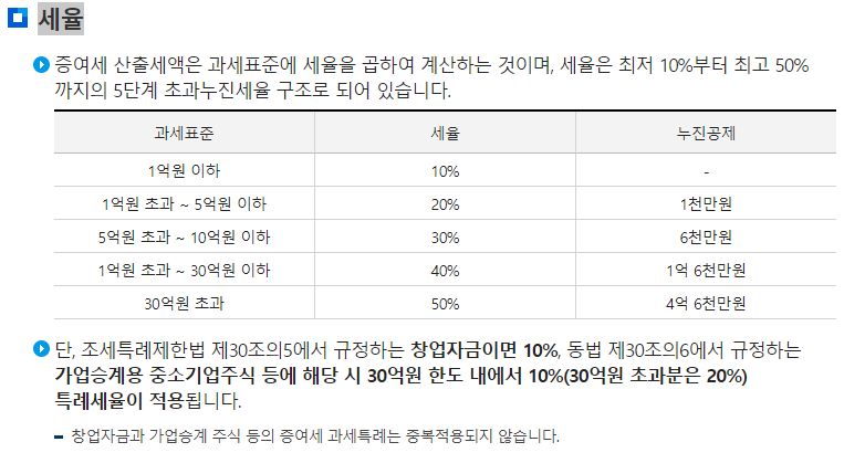 기본적인 세율은 증여세와 똑같습니다.