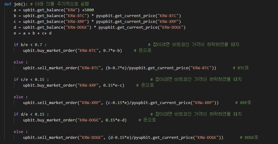 이렇게 각각 비트코인, 리플, 도지 코인을 if로 돌렸습니다.