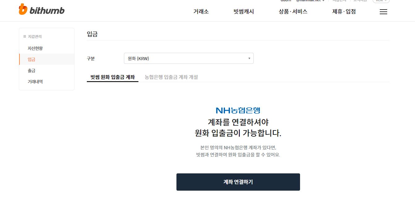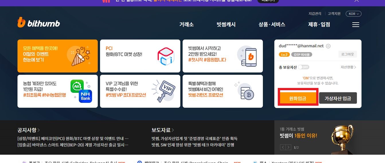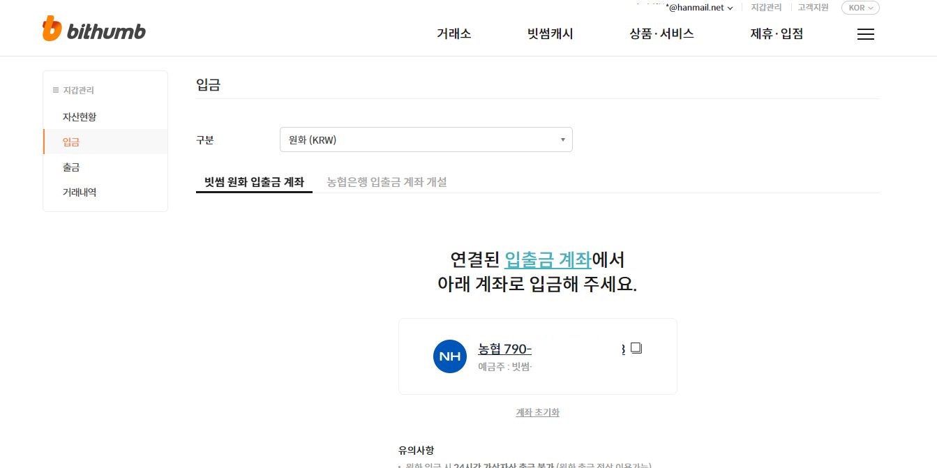 ->가상자산 또는 원화 5만 원 이상 입금하기
