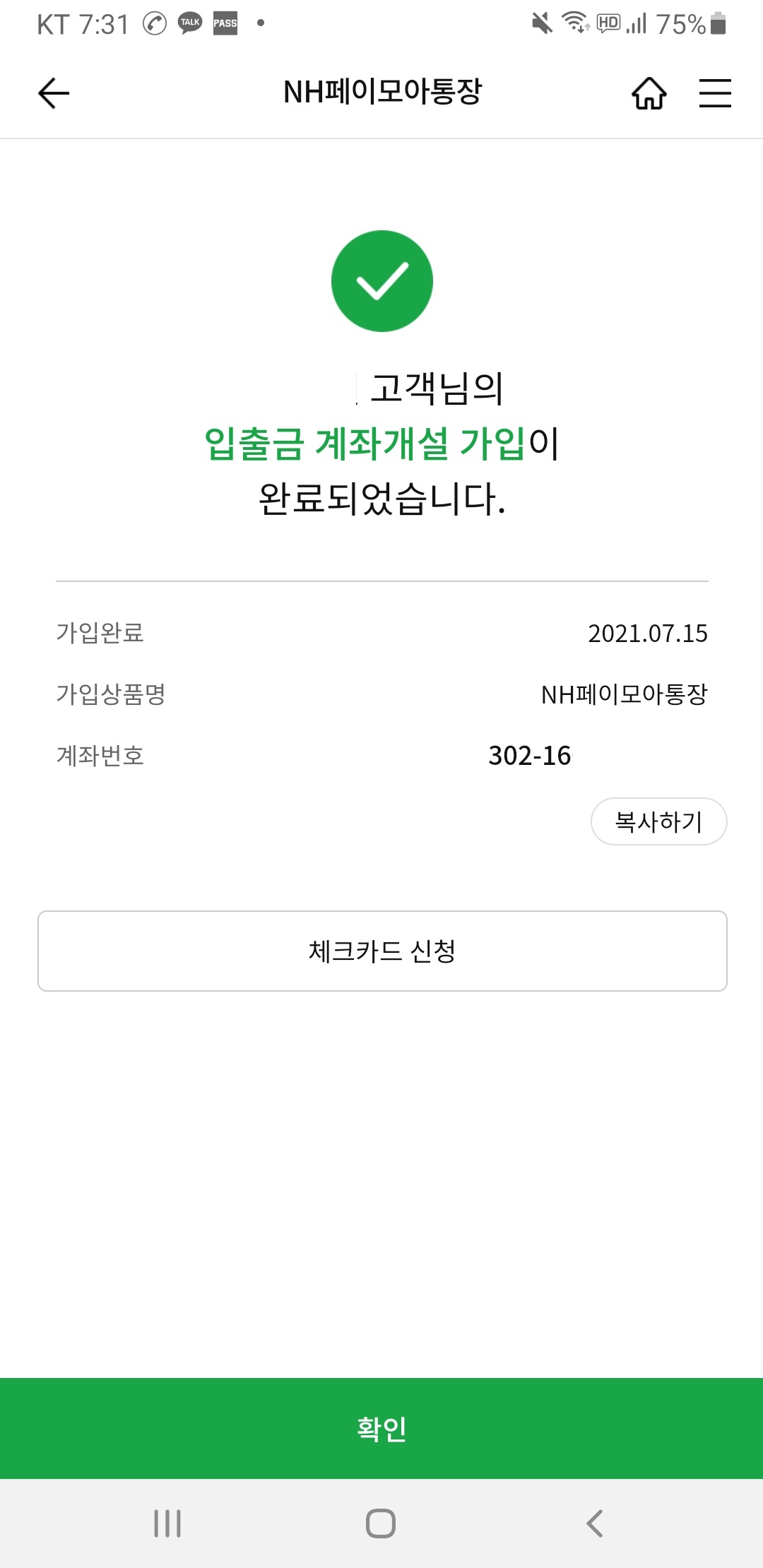 저는 NH스마트 뱅킹을 이용해서 만들었습니다.
