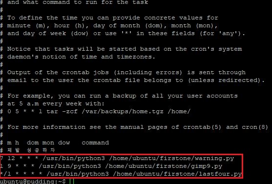crontab -e # 크론탭 수정하기