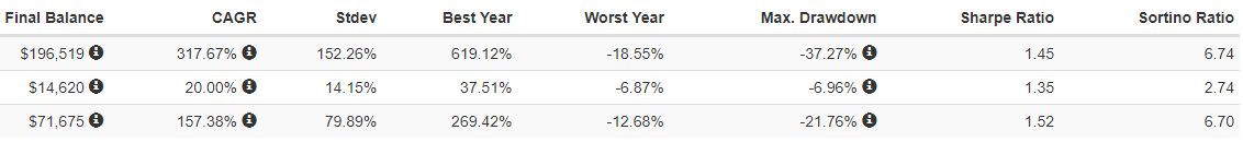 흔히 말하는 샤프지수(위험 대비 수익률)도 1.45, 1.35, 1.52로 주식 + 코인이 최고로 높게 나왔고요.