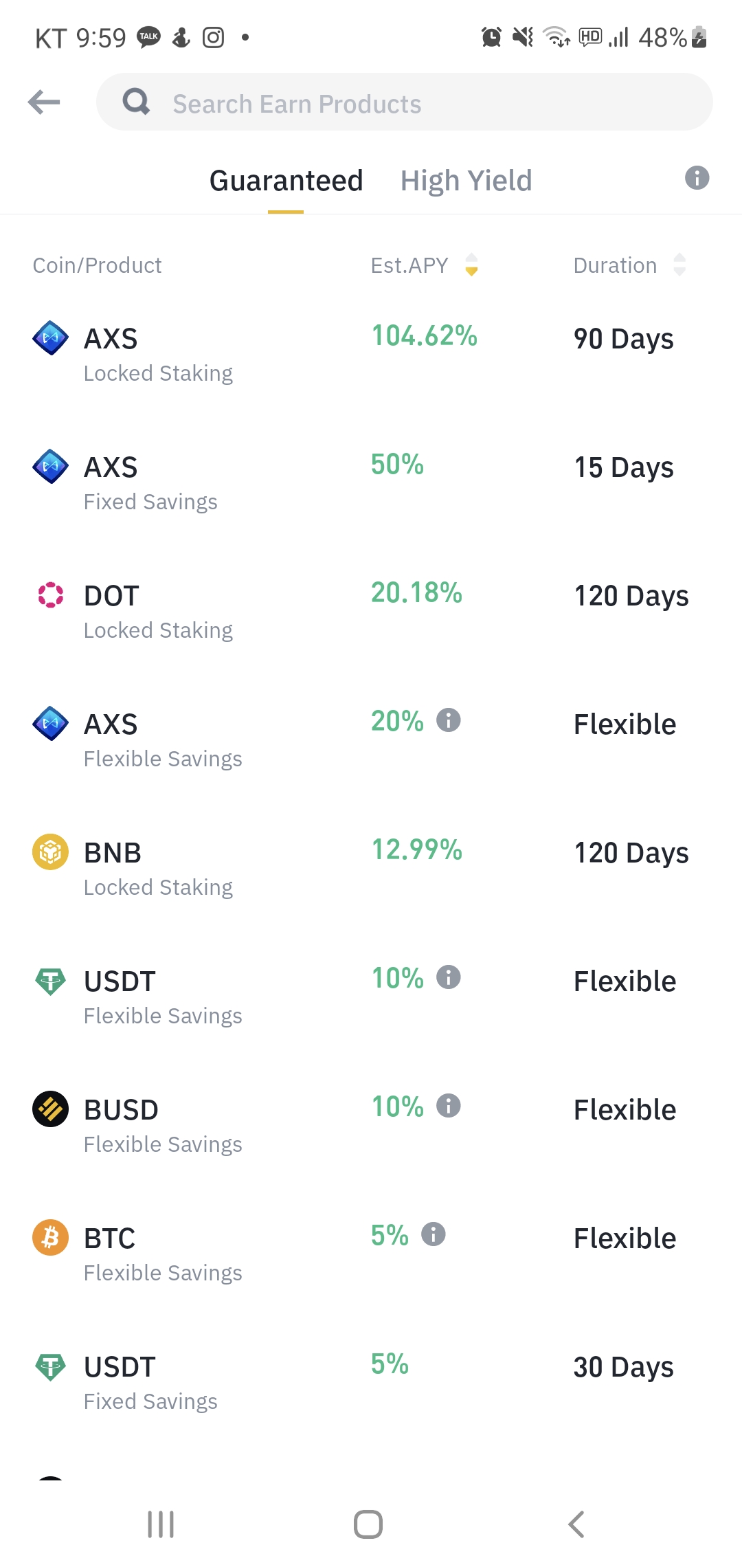 다음이 지금 바이낸스에서 주는 이자를 표시한 것이다.