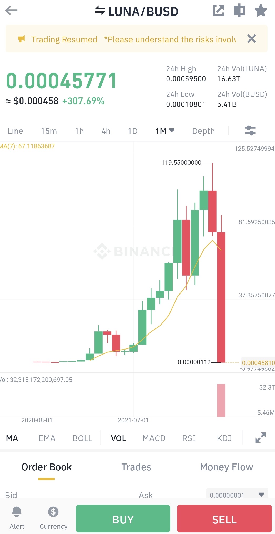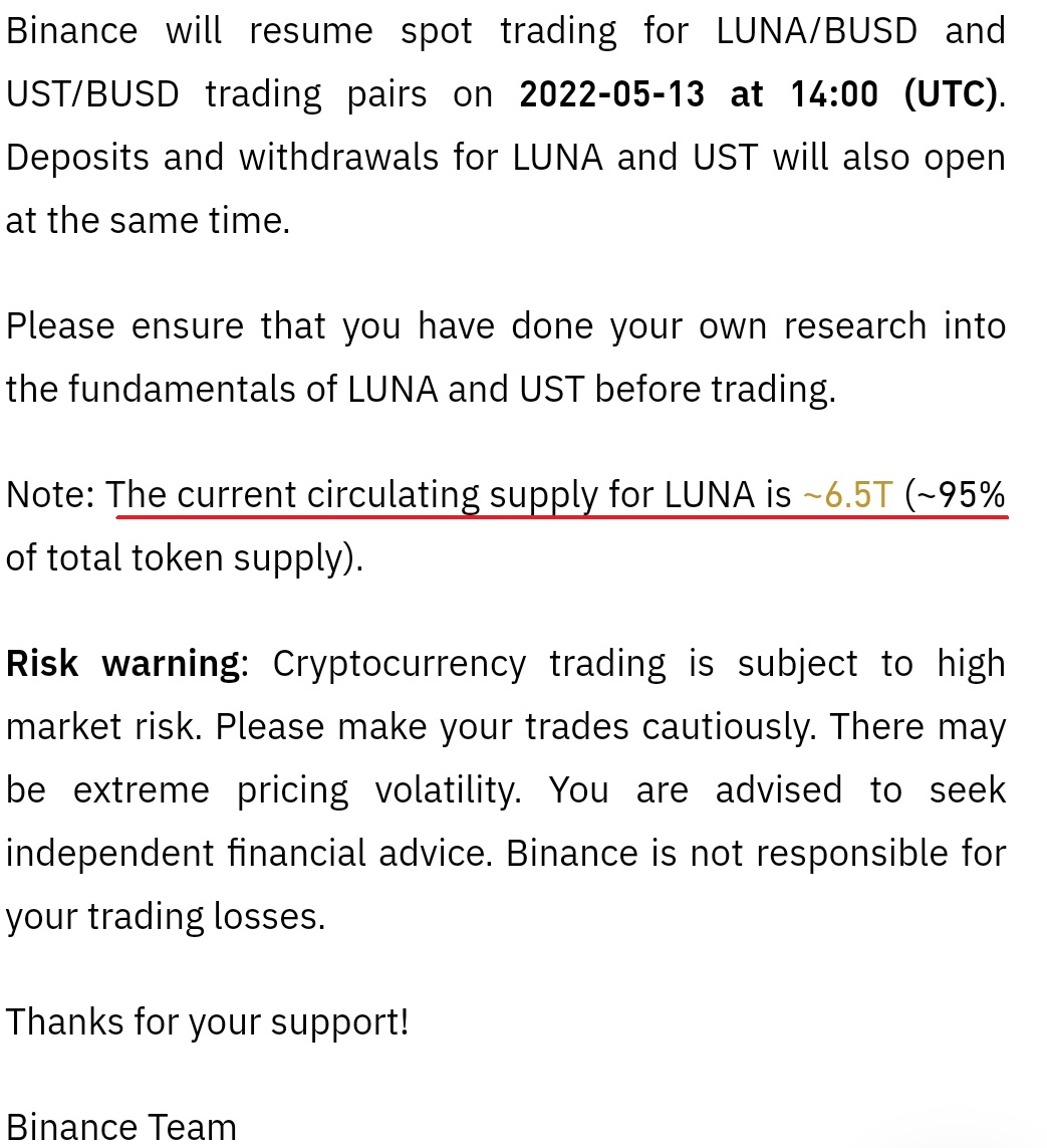 5월 13일부터 다시 바이낸스에서 ust와 루나에 대한 거래가 재개되었습니다.