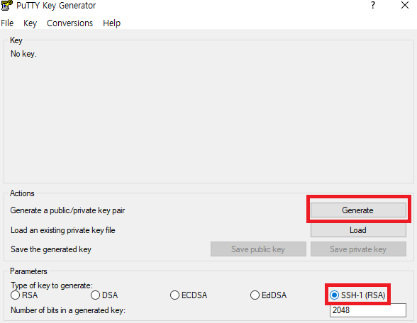 2. putty gen(putty generator) 사용법