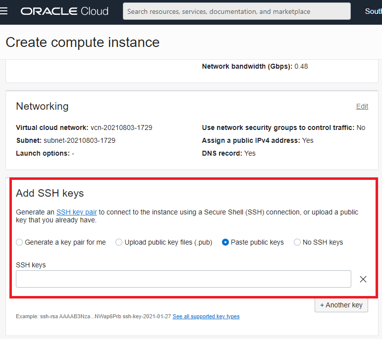 아 참고로 서버에 SSH 공용키(자물쇠)를 넣으려면 처음에 VM 가상 머신 만들 때 거기서 SSH 공개키를 넣어주면 됩니다!
