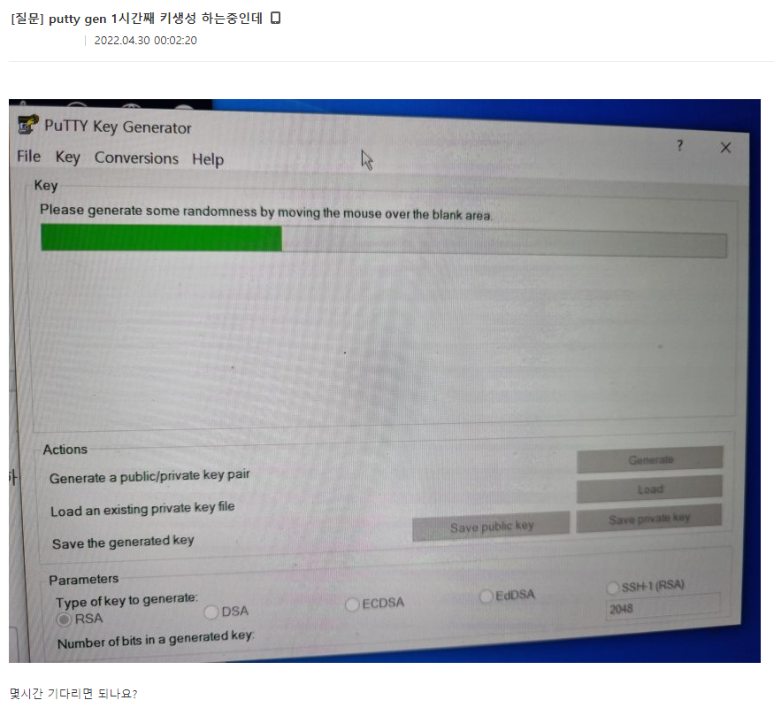 처음에 ssh키를 어디다 두었는지 모르다가 찾았는데 ssh키를 putty gen으로 만들어서