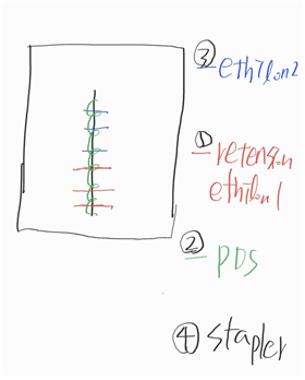 mersilk 2-0, 3-0 X2씩(tie), mersilk 3-0 CR, PDS 0, vicryl 3-0 311h X2, ethilon 1X3ea, ethion X 2 ea