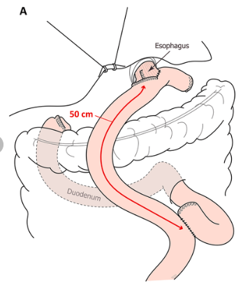 Roux-en-Y 라는 방법으로 어느 정도 길이가 되야(roux limb 길이 40-45) bile의 역류가 일어나지 않아 역류성 식도염을 예방할 수 있다고 합니다.