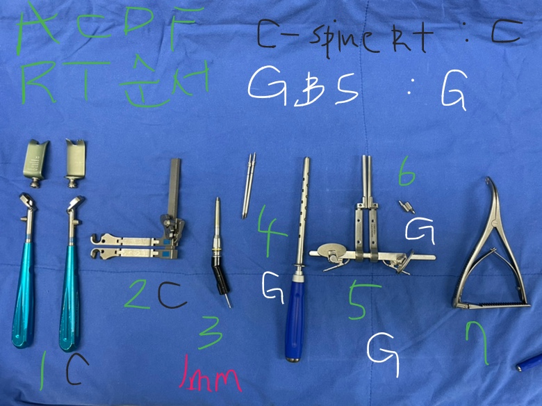 c-spine ? : 1b, 2b, osteotome만 빼고 나머지는 anspach 통에 넣기.