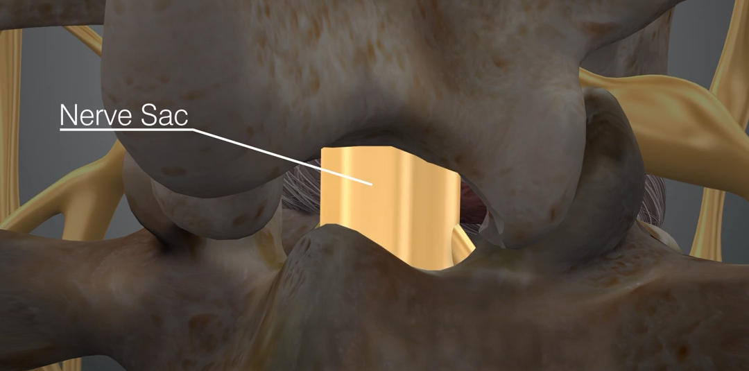 body와 body 사이에 cord가 있는데 보통 retrection하고 sac 아래 있는 튀어나온 disc를 제거한다.