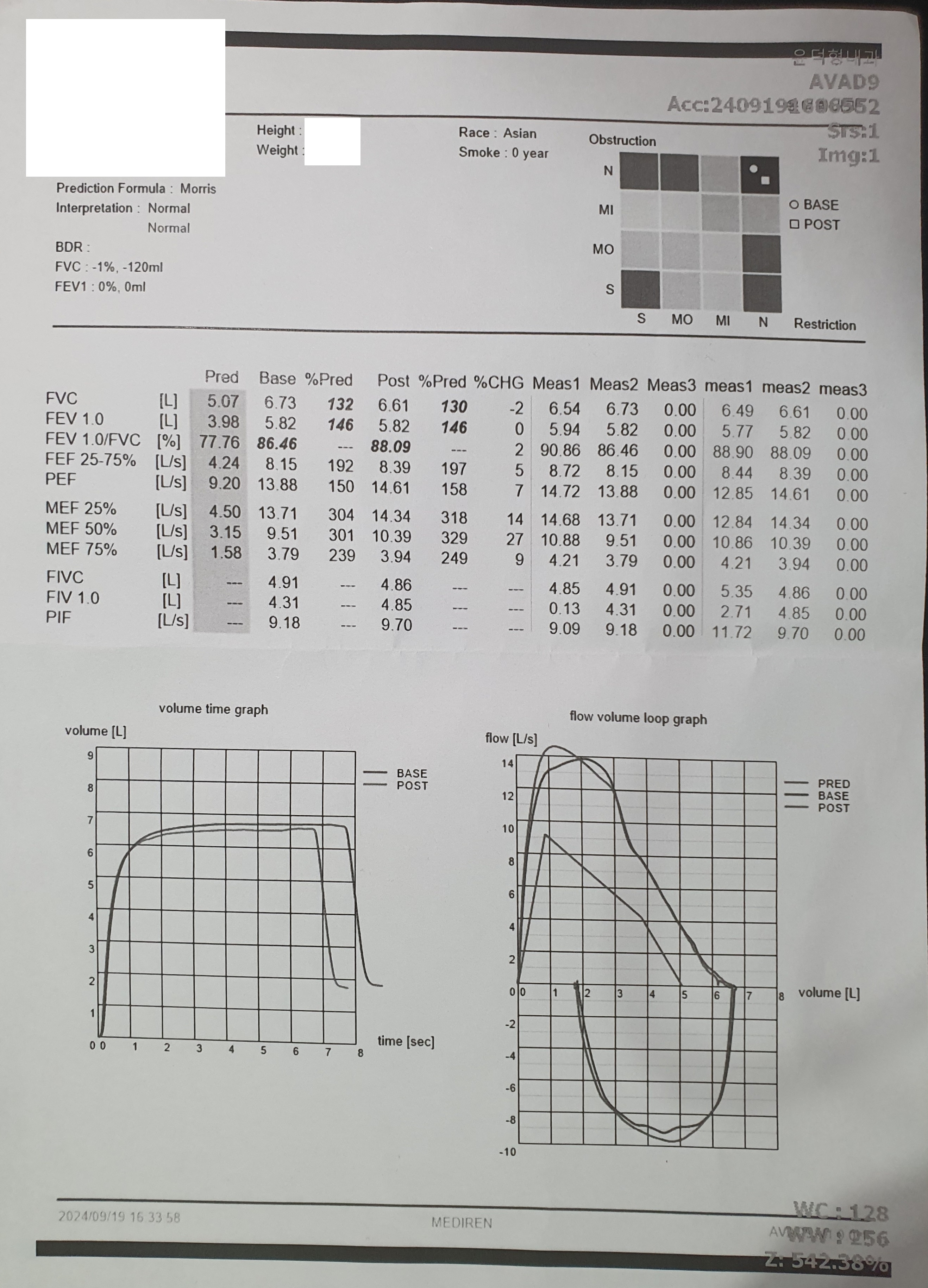 처음에는 그냥한번해서 base를 결정하고 벤토린(아마도?)을 사용하고서 한번 더 했다.