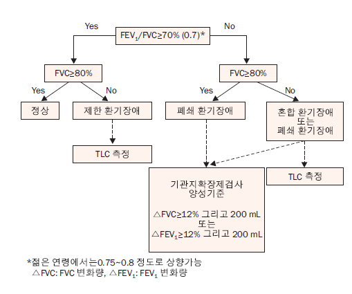 - 일초율, FEV1과 FVC 의 비율, %로도 표기 가능