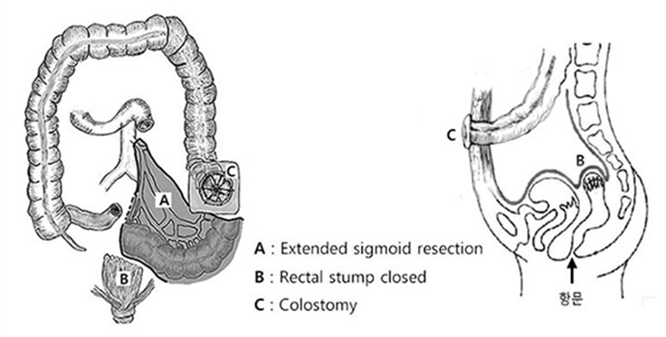 하트만 수술은 간한히 말하면 sigmoid colon을 자르고 colostomy를 해주는 수술이다.