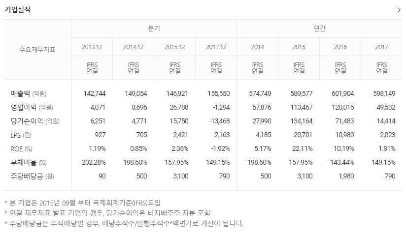 증권으로 넘어가면서 자세한 사항이 나오는데 여기서 스크롤을 내리면 기업 실적이 보입니다.
